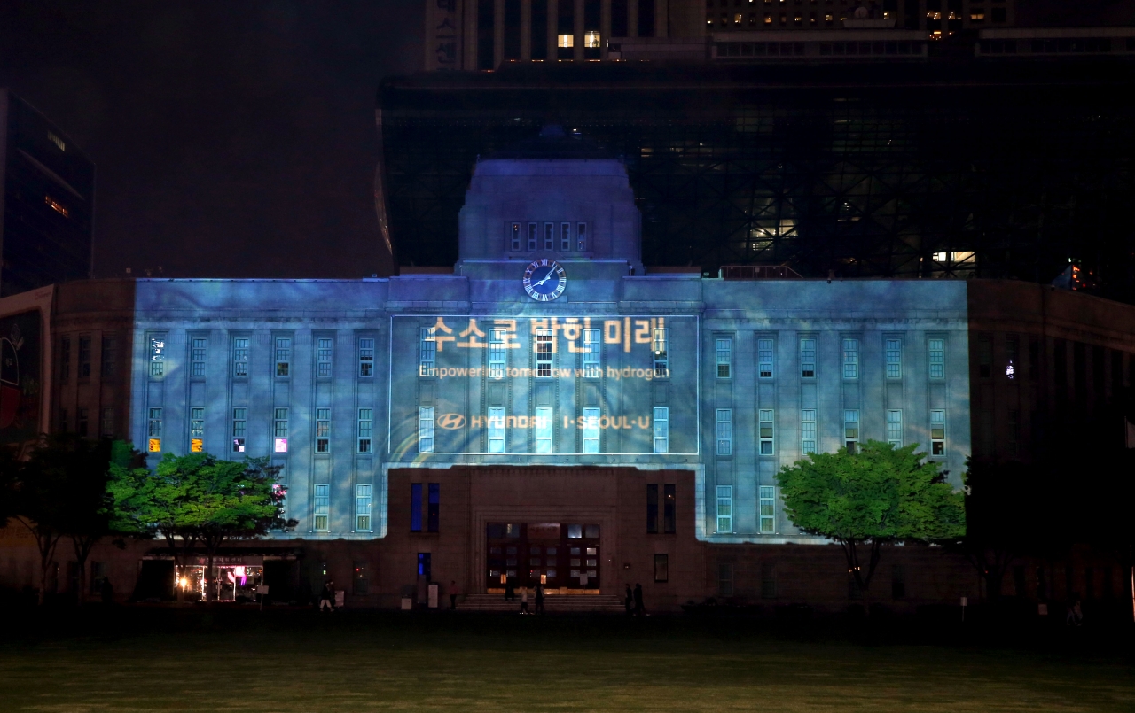 현대차가 지구의 날 기념 이벤트를 진행했다. 현대차는 이달 22일 저녁 8시부터 지구의 날 불 끄기 행사가 진행되는 동안 구(舊) 서울시청 외벽에 프로젝션 맵핑 기법으로 영상을 투사했다.