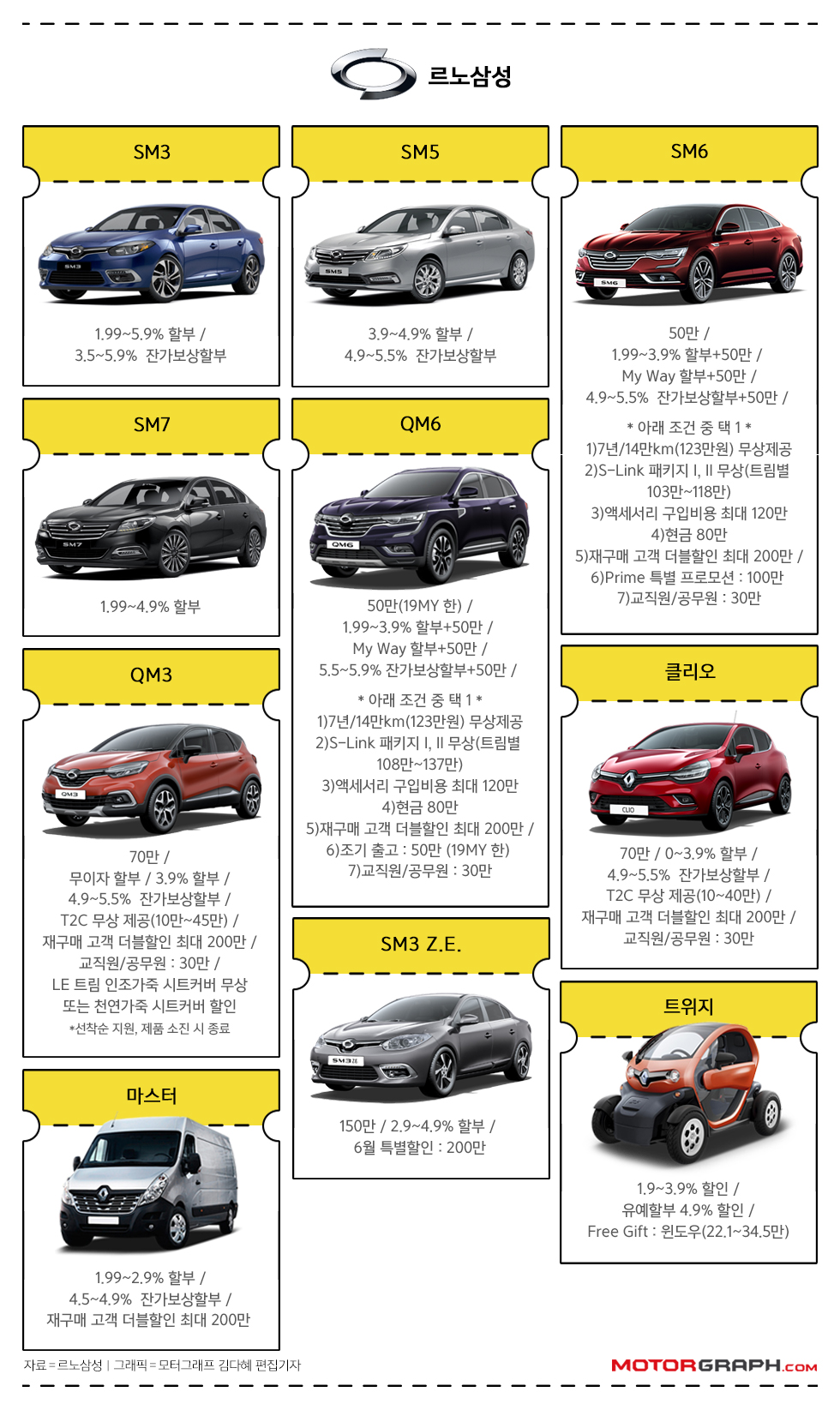 또한, 특별 추가 혜택을 통해 SM6·QM6 고객은 7년/14만km 보증연장, S-링크 패키지, 액세서리 구매비용 120만원, 현금 80만원 중 한 가지를 선택할 수 있다.