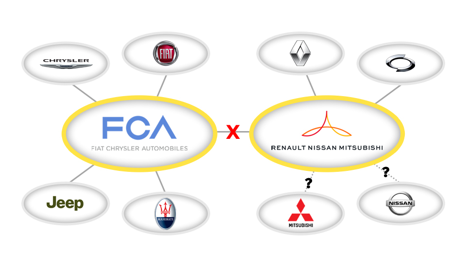 FCA는 지난 26일 르노 측에 50대 50 합병을 제안한 바 있다. 합병이 성사됐다면 폭스바겐그룹, 토요타에 이어 세계 3위 자동차 제조사의 탄생으로 주목받았다. 여기에 르노와 동맹 관계인 닛산과 미쓰비시까지 합세했다면 세계 판매 1위의 글로벌 동맹 탄생도 가능했다.