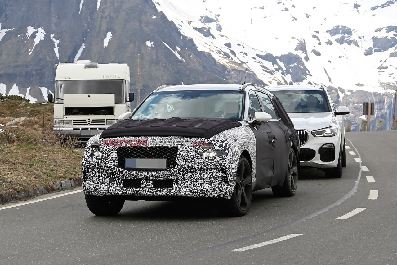 제네시스 브랜드 최초 SUV인 GV80이 유럽 알프스에서 포착됐다. 지난번 발견된 기아차 쏘렌토 프로토타입처럼 BMW X5를 견인하고 있다.