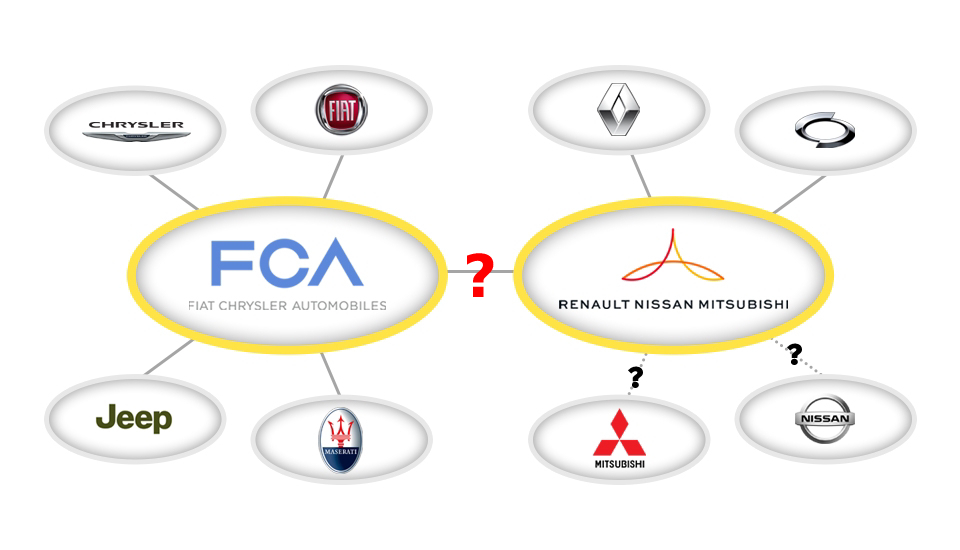 FCA와 르노는 지난 5월 합병을 추진했다. 당시 FCA는 르노 지분 15% 보유한 프랑스 정부의 간섭이 부적절하다며, 합병 제안을 철회한 바 있다. 양사 간 합병은 폭스바겐그룹, 토요타에 이어 세계 3위 자동차 제조사의 탄생으로 주목받았다. 여기에 르노와 동맹 관계인 닛산 및 미쓰비시까지 합세했다면 세계 판매 1위의 글로벌 동맹 탄생도 가능한 상황이다.