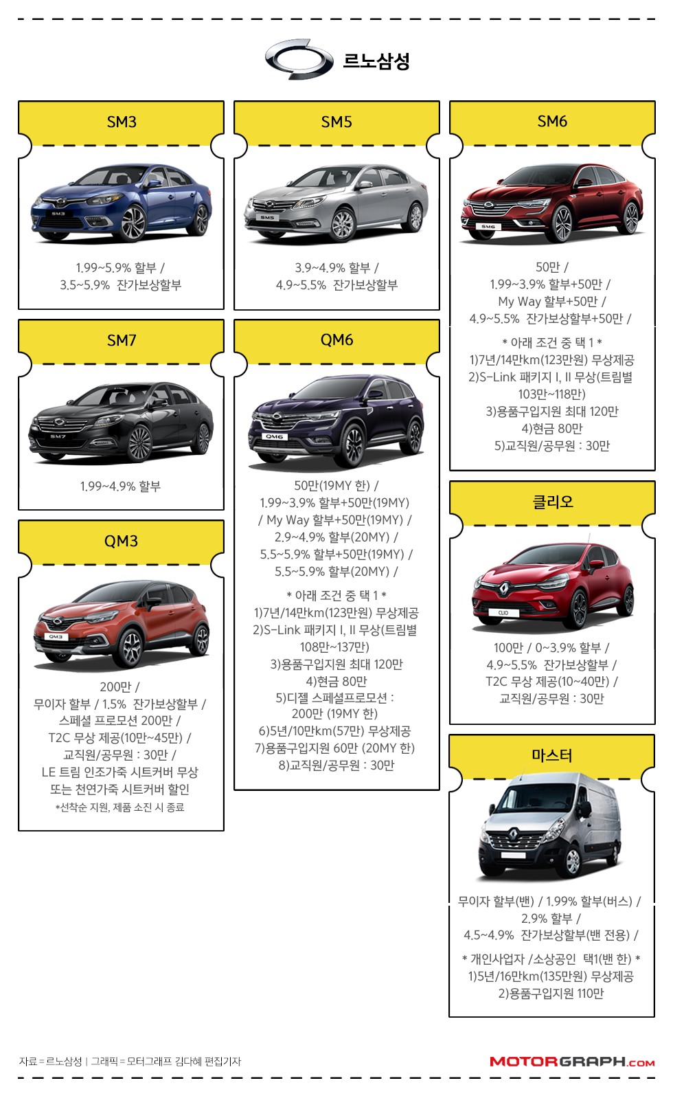 르노삼성은 여름휴가 시즌을 맞아 7월 한 달간 신차 구매 고객을 대상으로 보증연장, 유류비 지원, 무이자 및 저금리 금융상품 등 혜택을 제공한다.
