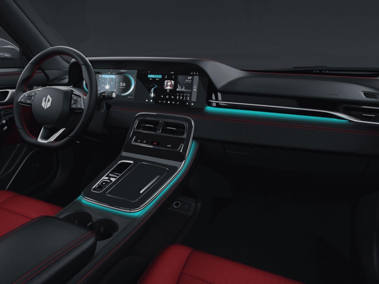 실내 스타일링과 모양은 전체적으로 넓은 느낌을 준다. 센터 콘솔에는 물리적 버튼이 없는 10.1인치 디스플레이가 눈에 띈다. 또한, 열쇠 대신 손가락 정맥과 얼굴 인식 시스템을 탑재해 차량을 잠금 해제할 수 있는 ‘리프 인’ 기능을 탑재했다.