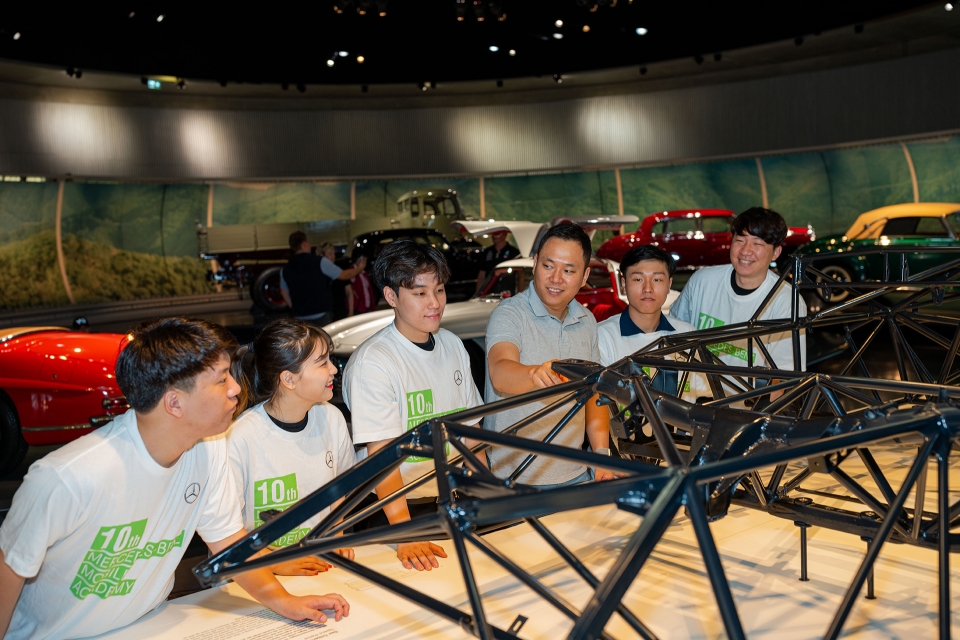 참가 학생들은 독일 진델핑겐 공장에서 차량 생산 공정을 견학하고 글로벌 트레이닝 센터에서 최첨단 증강현실(AR) 트레이닝 솔루션을 직접 체험했다. 클래식 차량을 수리 및 복원하는 클래식 센터와 130여년 간 이어진 기술력 및 브랜드를 살펴볼 수 있는 메르세데스-벤츠 박물관, 그리고 브랜드 상용차를 견학할 수 있는 유니목 뮤지엄 등도 견학 코스에 포함됐다.