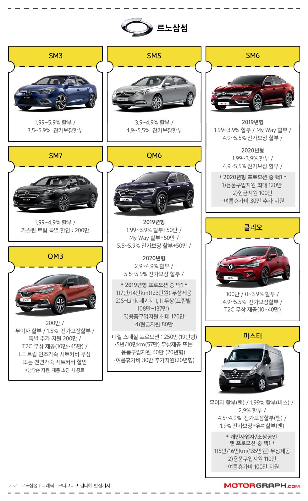 이외 SM3 Z.E.·QM3·클리오 등 비인기 차종은 현금 구매시 차종별 특별 혜택을 추가로 마련했다.