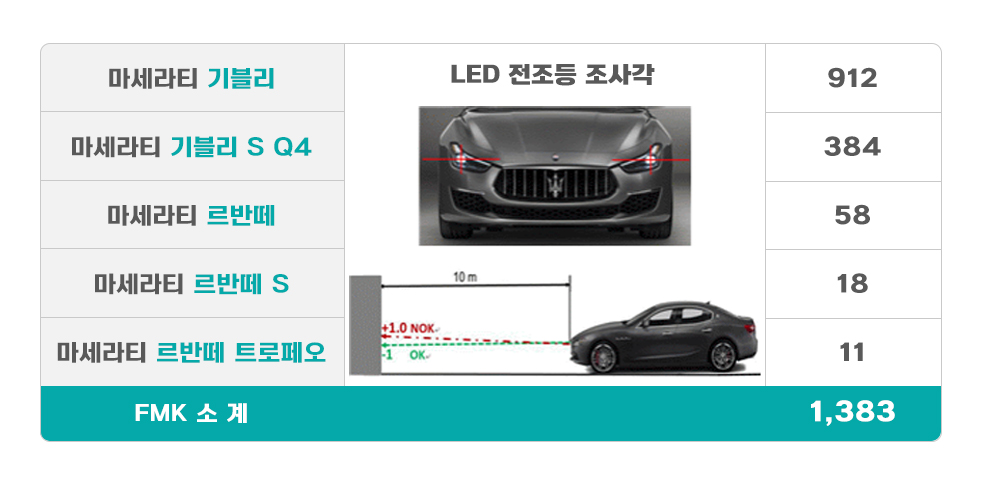 FMK가 수입·판매한 마세라티는 LED 전조등 조사각이 안전기준보다 높게 설정된 것이 적발됐다.