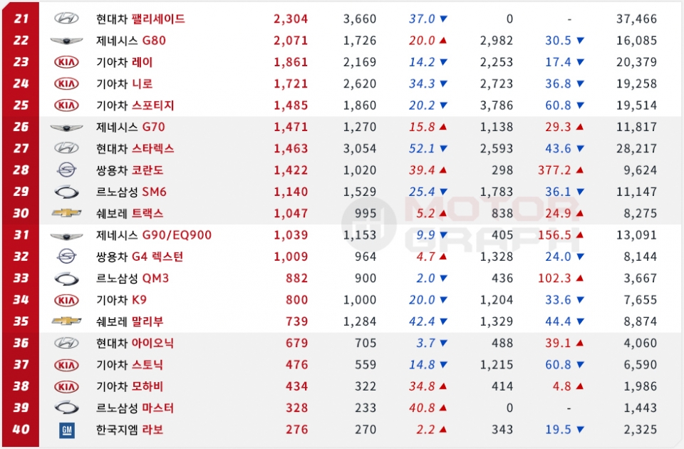 상대적으로 그동안 기아차 판매 실적을 이끌어왔던 카니발(4780대)과 쏘렌토(3476대)가 주춤한 모양새다.
