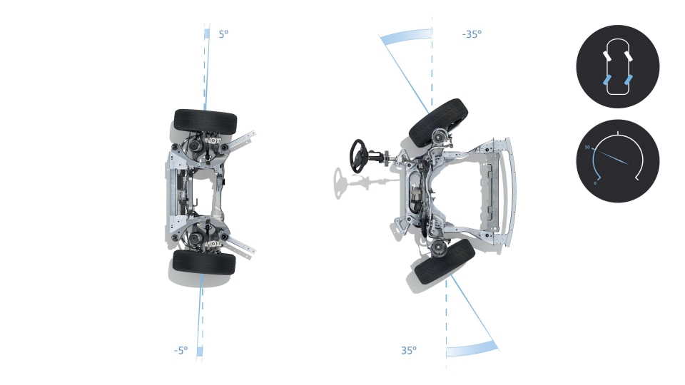 2WD 모델에는 후륜에 토션 빔이 적용되며, AWD 모델에는 후륜에 멀티링크 서스펜션이 적용된다. 특히, 멀티링크 서스펜션이 적용된 모델에는 후륜을 5º까지 돌려주는 후륜 조향 시스템이 적용되어 회전 반경이 10.1미터에 불과하다.