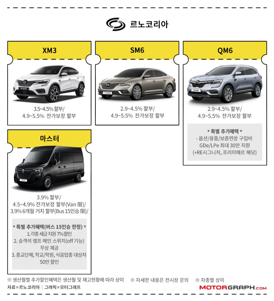 이와 더불어 지난달과 마찬가지로 QM6 RE시그니처, 프리미에르 모델 구매 시 편의사양·용품·보증연장 비용 30만원을 지원하는 이벤트가 계속된다.